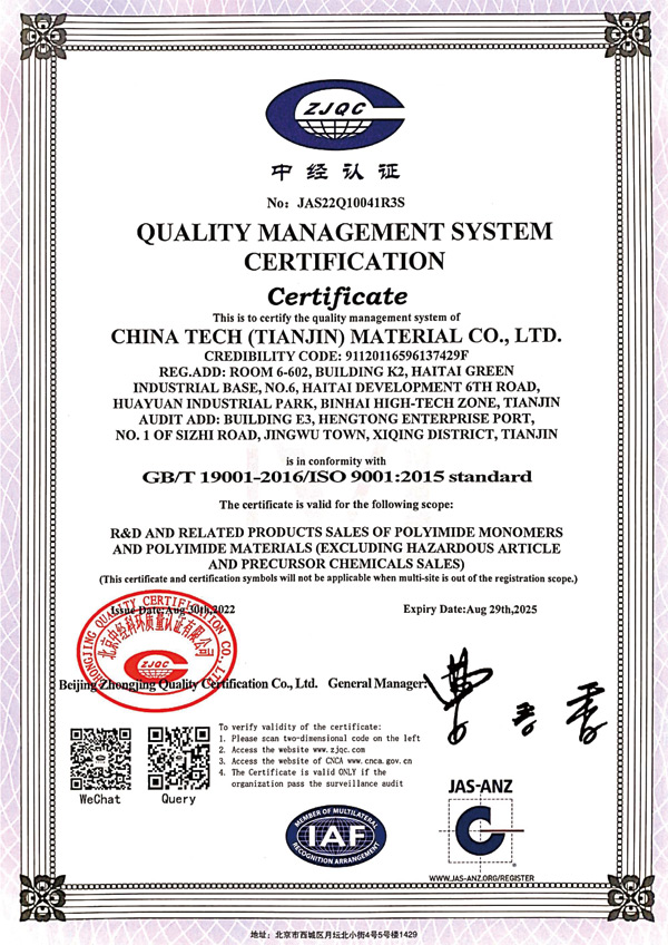 天津眾泰材料科技有限公司(以下簡稱“眾泰”),是一家“以先進功能性聚酰亞胺單體研發(fā)生產為核心,致力于推動全球聚酰亞胺材料產業發(fā)展”為使命的創新型高新技術企業。眾泰研制的聚酰亞胺單體目前已廣泛應用于無色透明柔性聚酰亞胺薄膜、柔性顯示材料、5G新材料等諸多高科技領域產品的生產。